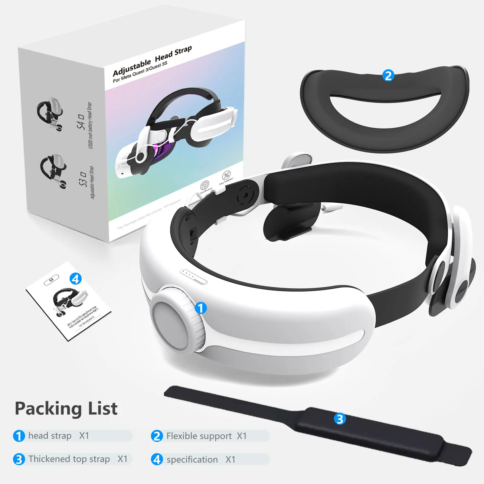 For meta quest 3 and quest 3s head strap Battery Adjustable VR Accessories Replacement Elite Strap 18W Charging Enhanced Playtim